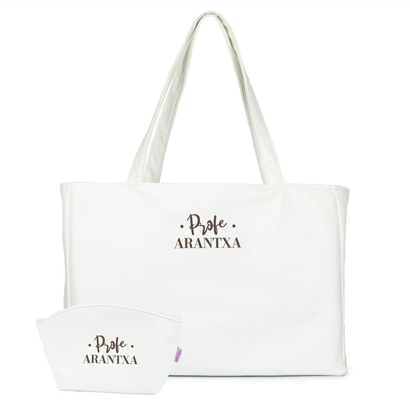 Pack Bolso Shopper + Neceser polipiel Blanco Profe/Seño + Nombre