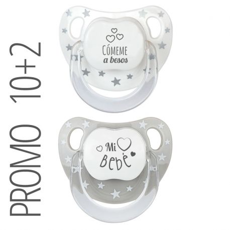 PROMO 10+2 PACK TWIN DIVERTIDOS: Compras 10 packs y te regalamos 2. Recibirás colores y frases top ventas variadas. Puedes elegir tetinas.