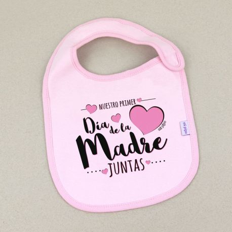Babero Divertido Nuestro primer día de la Madre JUNTAS Corazones Rosa