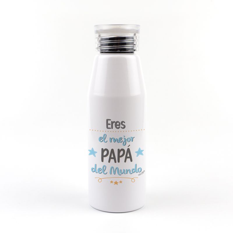 - Material: botella de alumino. El tapón incluye asa de silicona para su transporte.