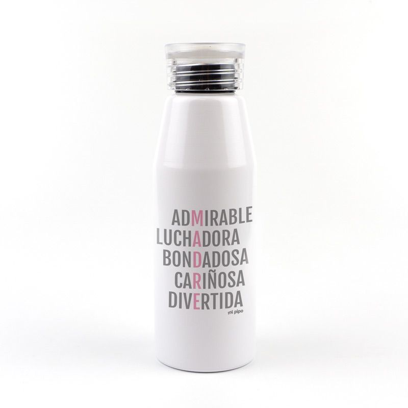 - Material: botella de alumino. El tapón incluye asa de silicona para su transporte.