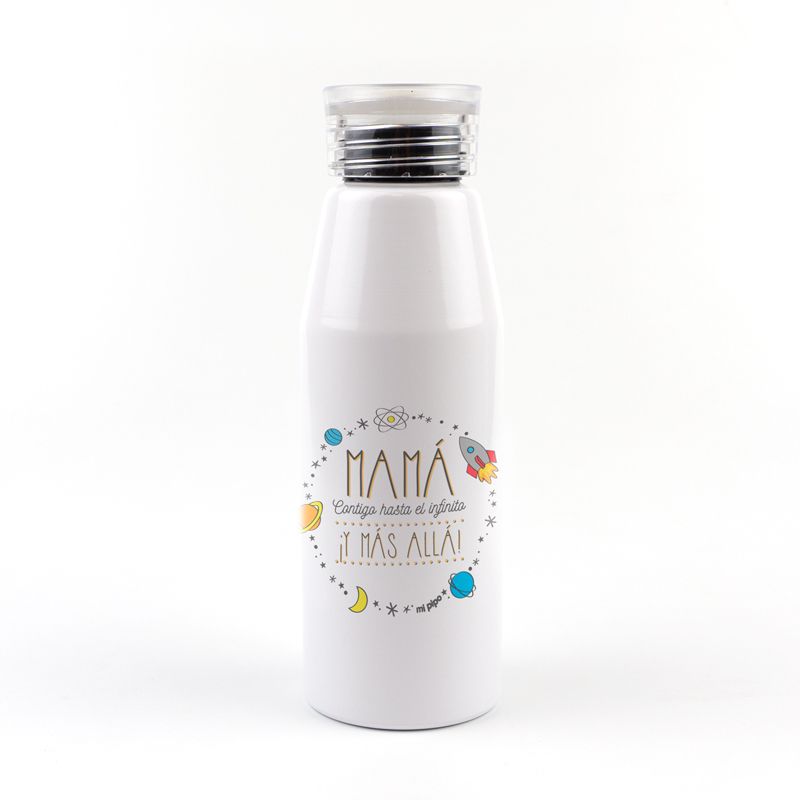 Botella Aluminio divertida Mamá contigo hasta el infinito y más allá