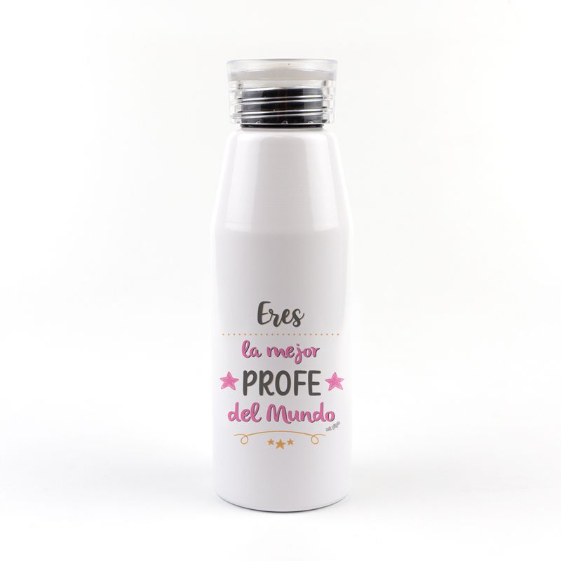 Botella Aluminio Eres la mejor PROFE del Mundo no personalizada rosa