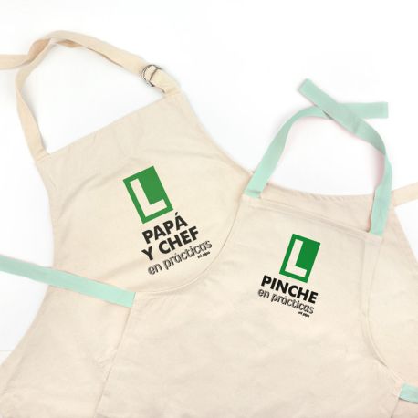 Pack Delantal Papá y Delantal Niño/a Divertido Papá y Chef en Prácticas y Pinche en Prácticas