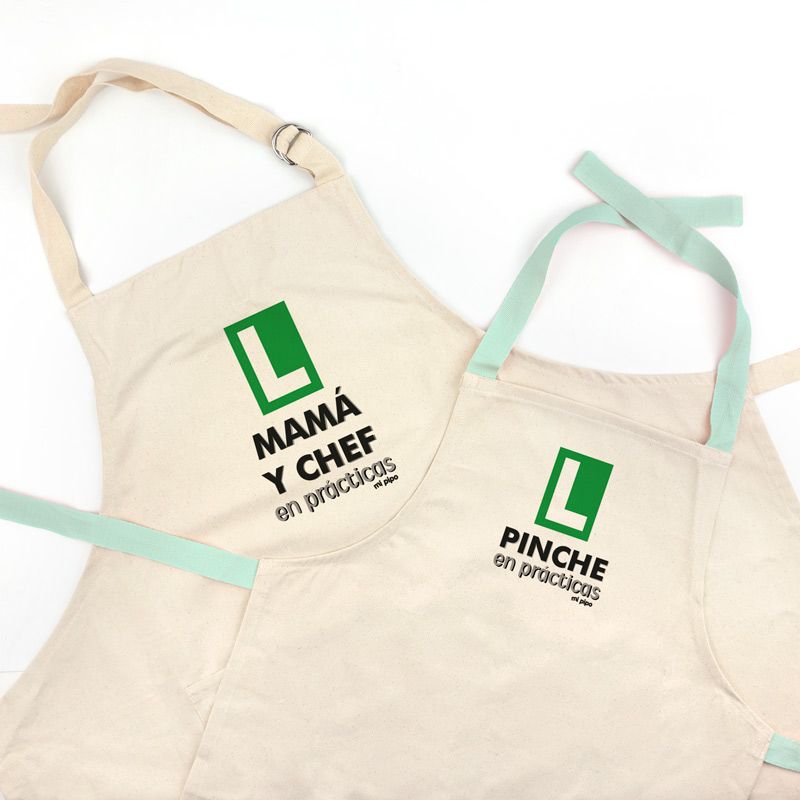 Pack Delantal Mamá y Delantal Niño/a Divertido Mamá y Chef en Prácticas y Pinche en Prácticas