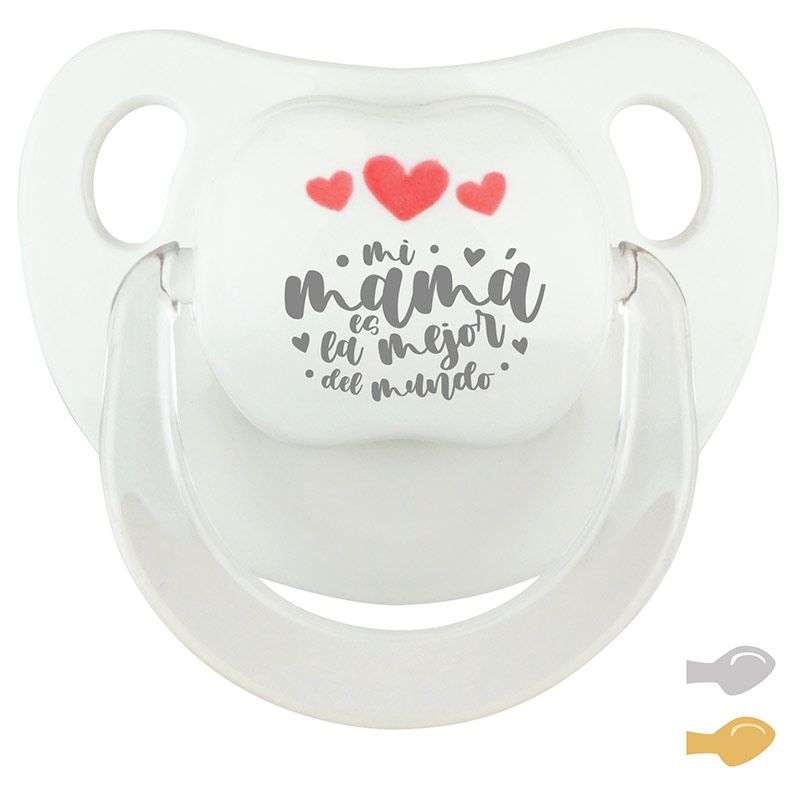 Chupete Baby Deco Blanco Corazones Rojo Mi Mamá es la mejor del mundo corazones lunares (LATEX 50% DTO)