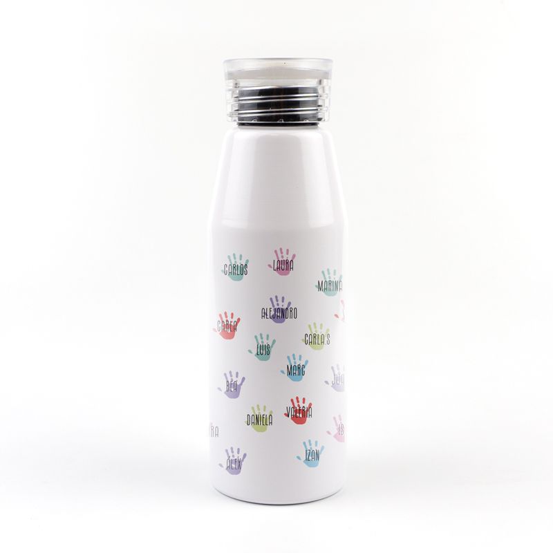 - Material: botella de alumino. El tapón incluye asa de silicona para su transporte.