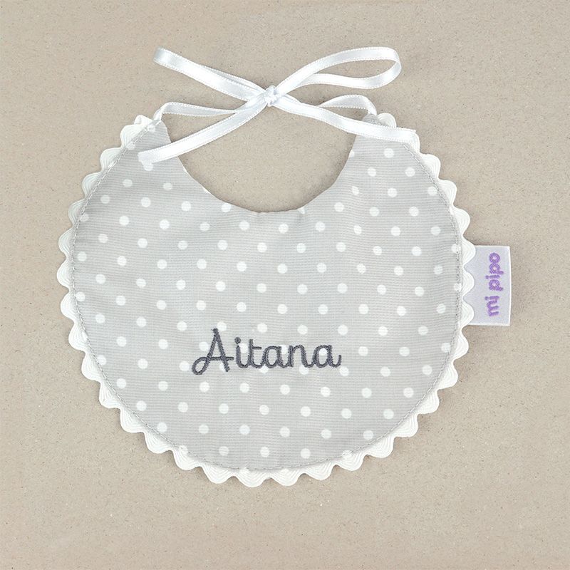 Babero Piqué Gris-Topitos Personalizado
